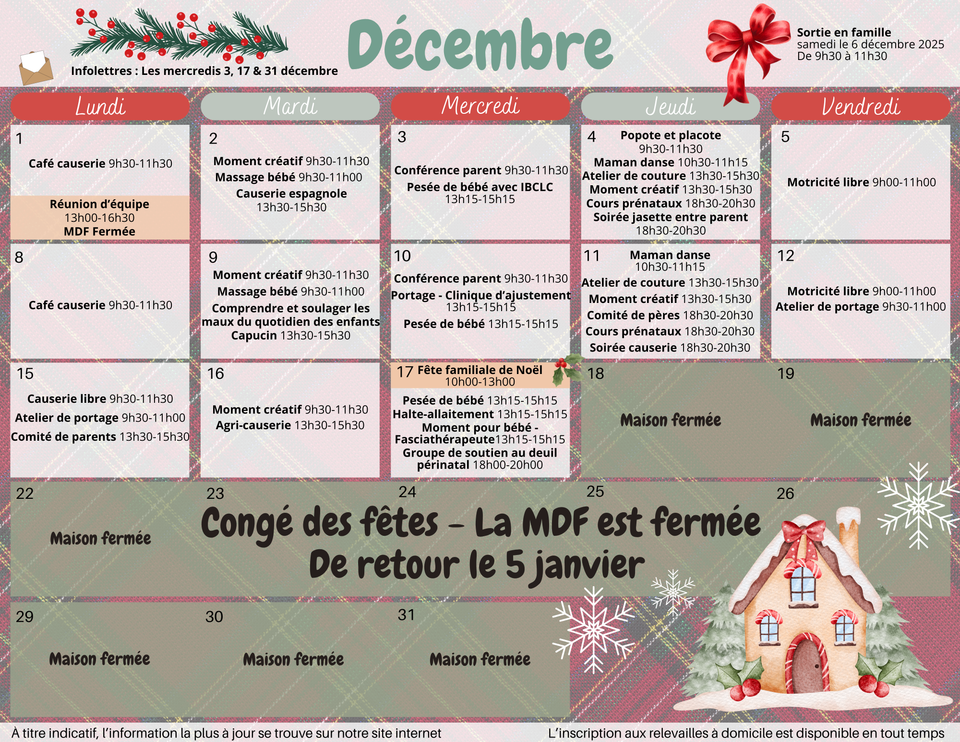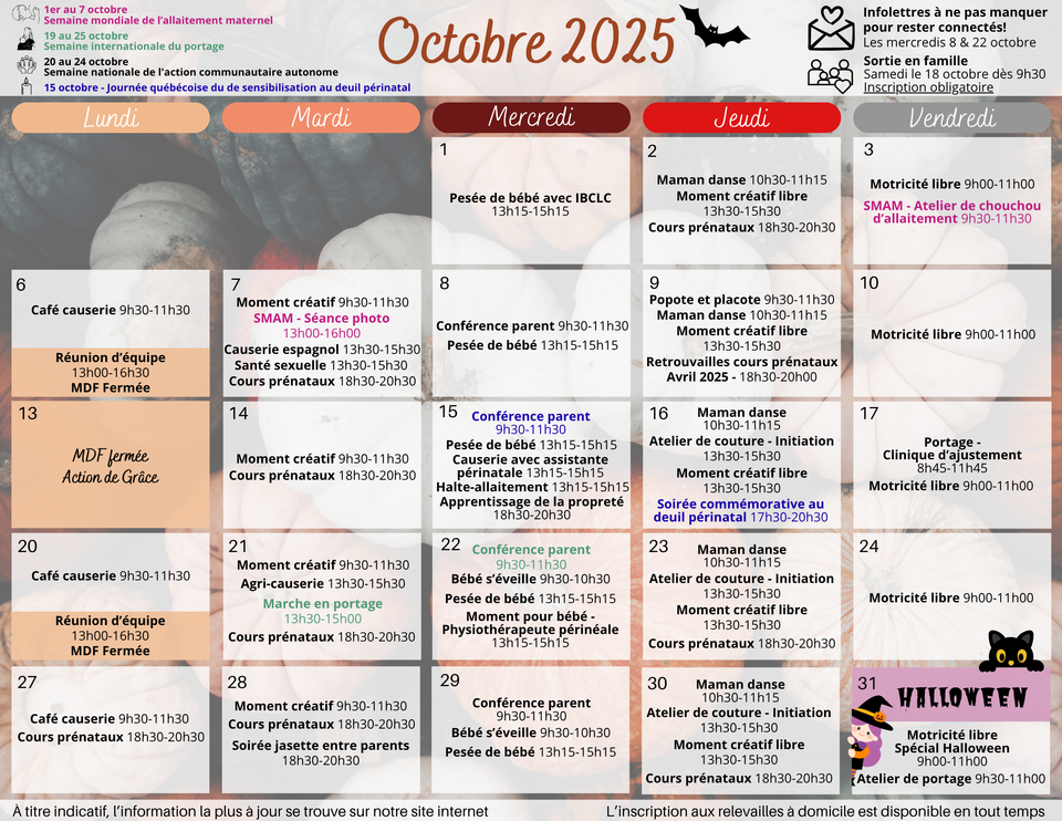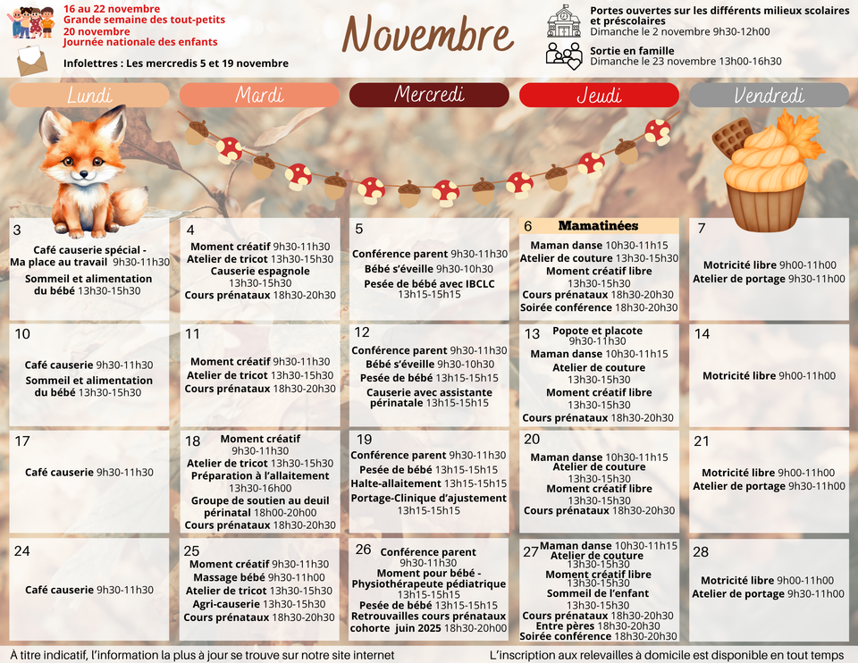 Plusieurs cours et ateliers offerts de la grossesse à l'adolescence;